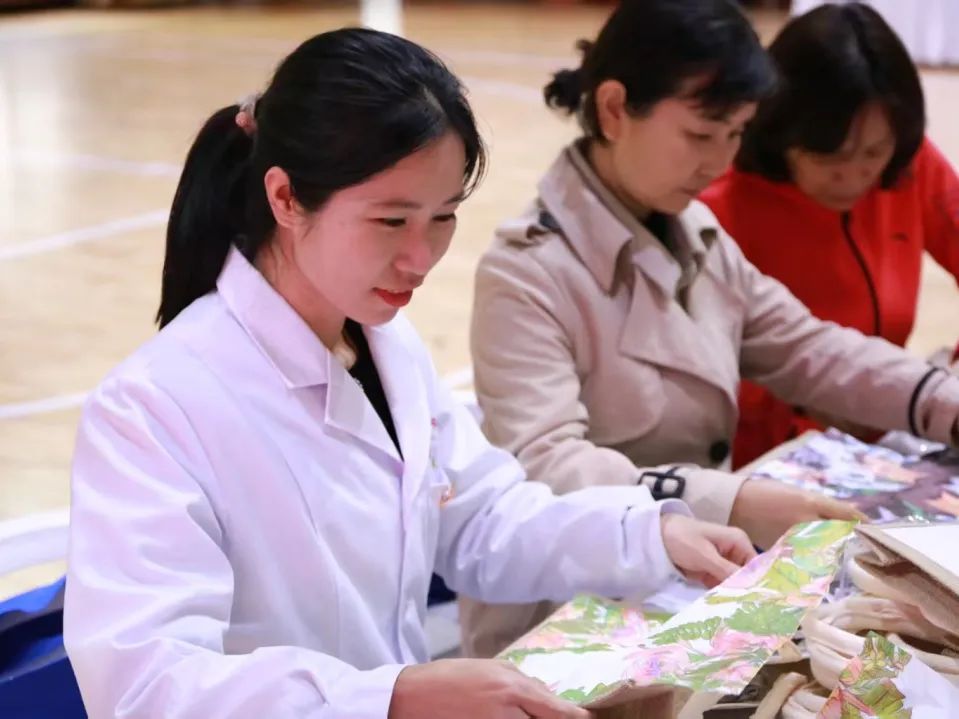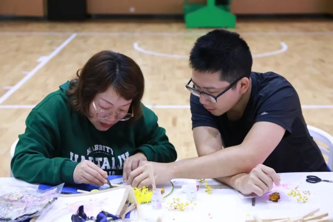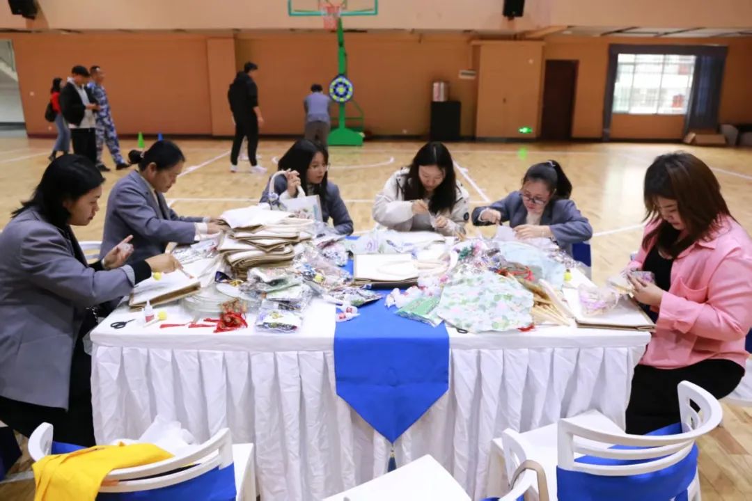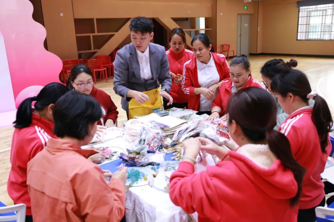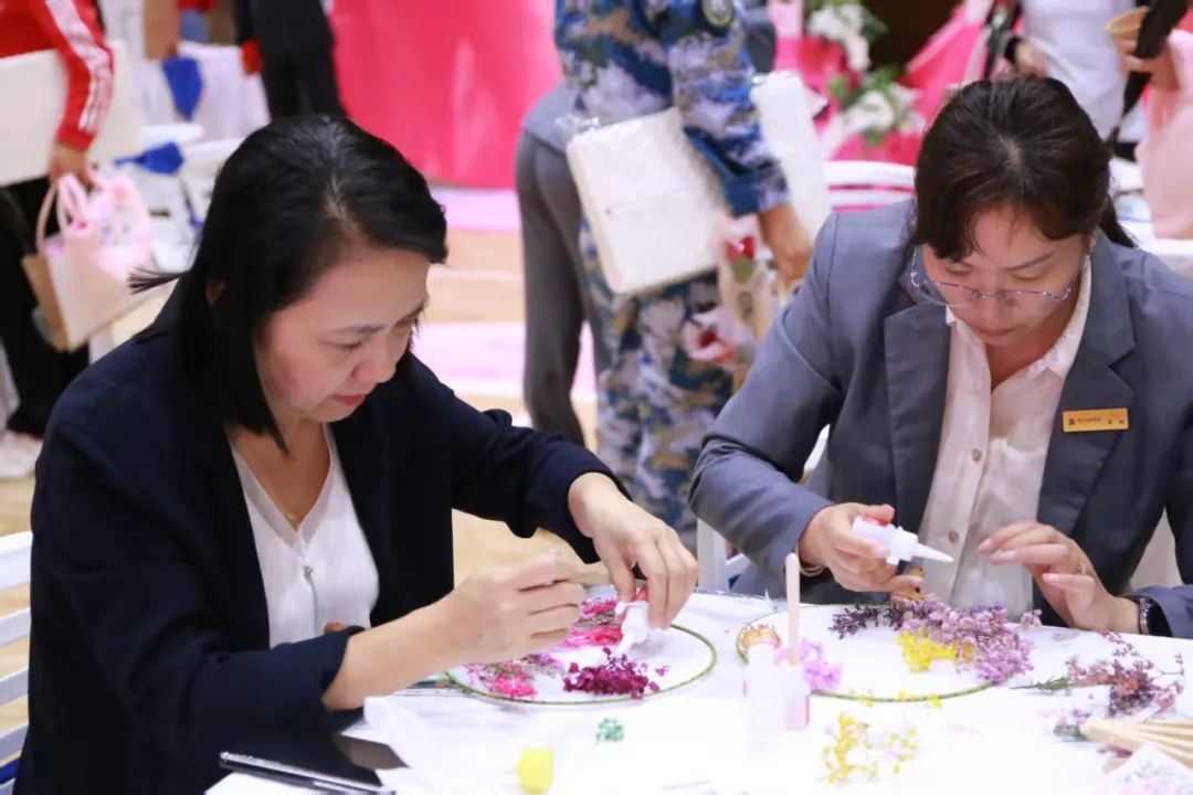 女教職工們簇?fù)矶?,?xì)心制作永生花團(tuán)扇、花燈、手工包等,體驗(yàn)手工樂趣,展現(xiàn)藝術(shù)風(fēng)采。