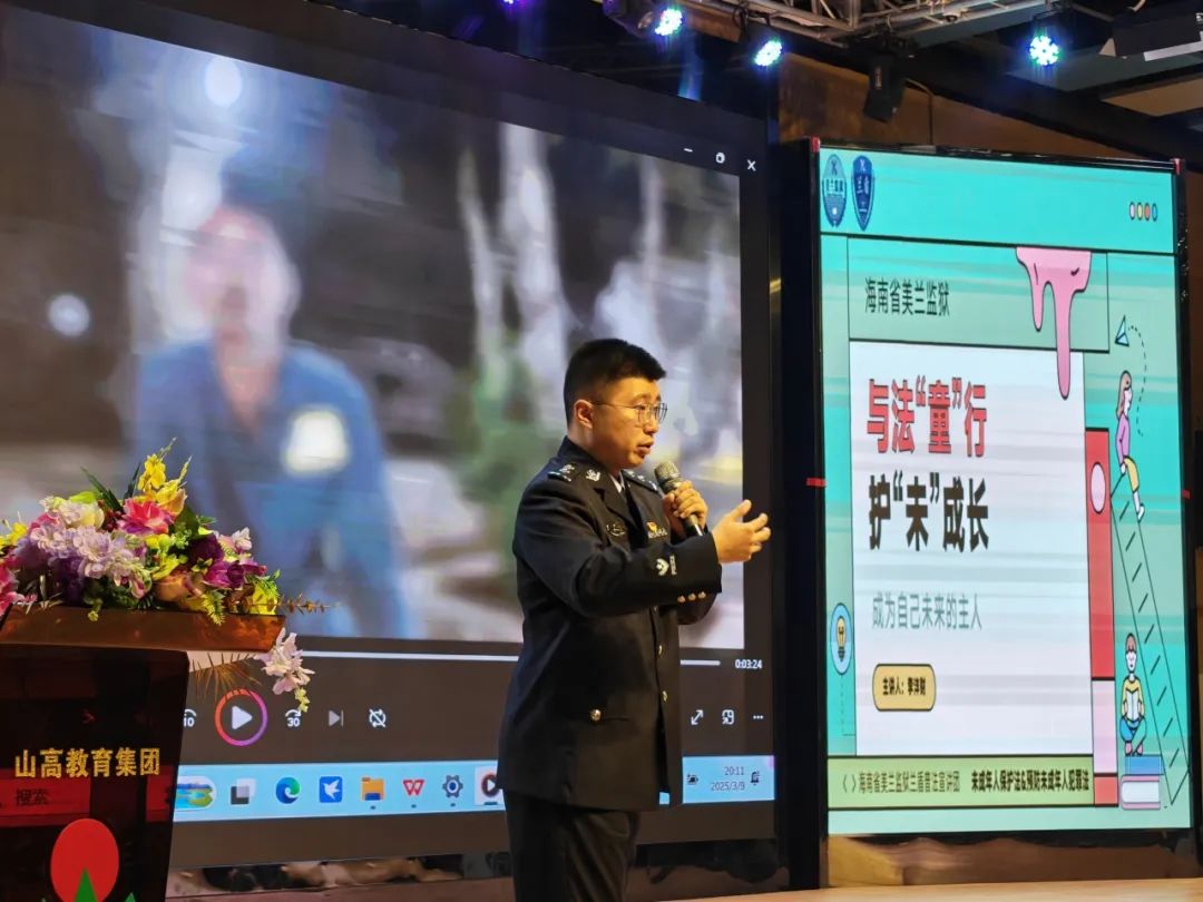? ? ? ?為增強(qiáng)學(xué)生法治意識,筑牢青春成長防線,2025年3月9日晚,??谏礁咧袑W(xué)特邀海南省美蘭監(jiān)獄蘭盾普法宣講團(tuán)李灃財(cái)警官分別為初中部和高中部的同學(xué)們帶來了精彩的法治課。