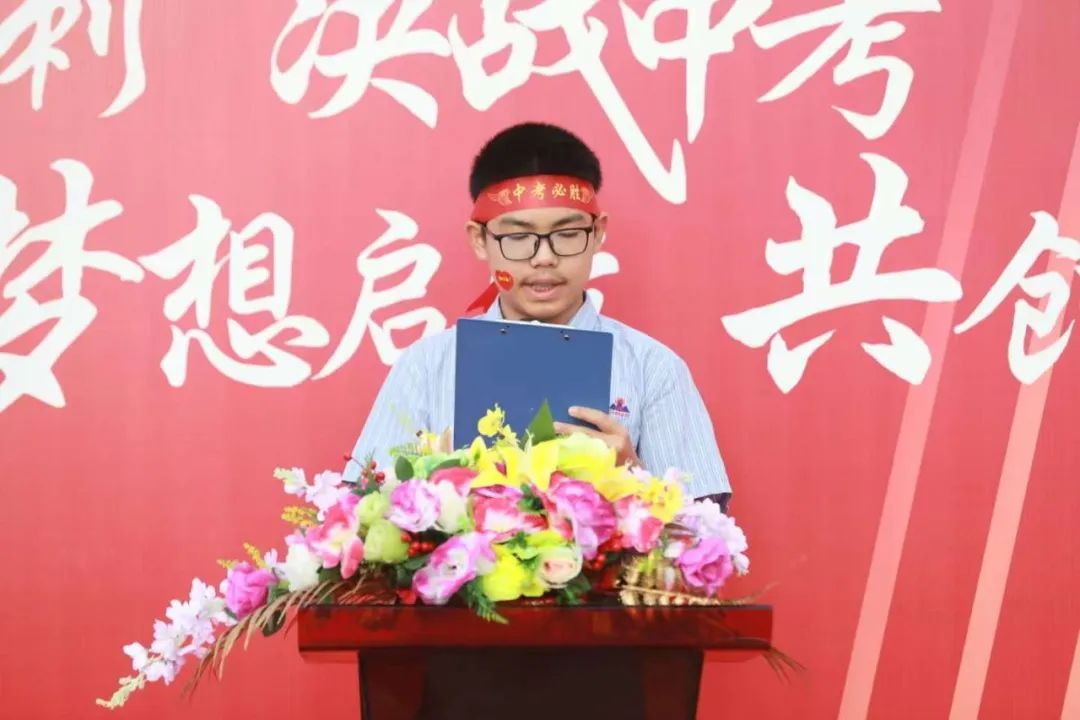 八(15)班何恩朵、九(5)班廖煜晨同學(xué)代表全體八九年級(jí)學(xué)生上臺(tái)發(fā)言,他們表達(dá)了全體初三學(xué)生對(duì)中考的堅(jiān)定信心和決心,全體學(xué)子將不負(fù)眾望,以更加飽滿的熱情和更加堅(jiān)定的信念迎接中考的挑戰(zhàn),為自己的夢(mèng)想和未來(lái)努力奮斗。