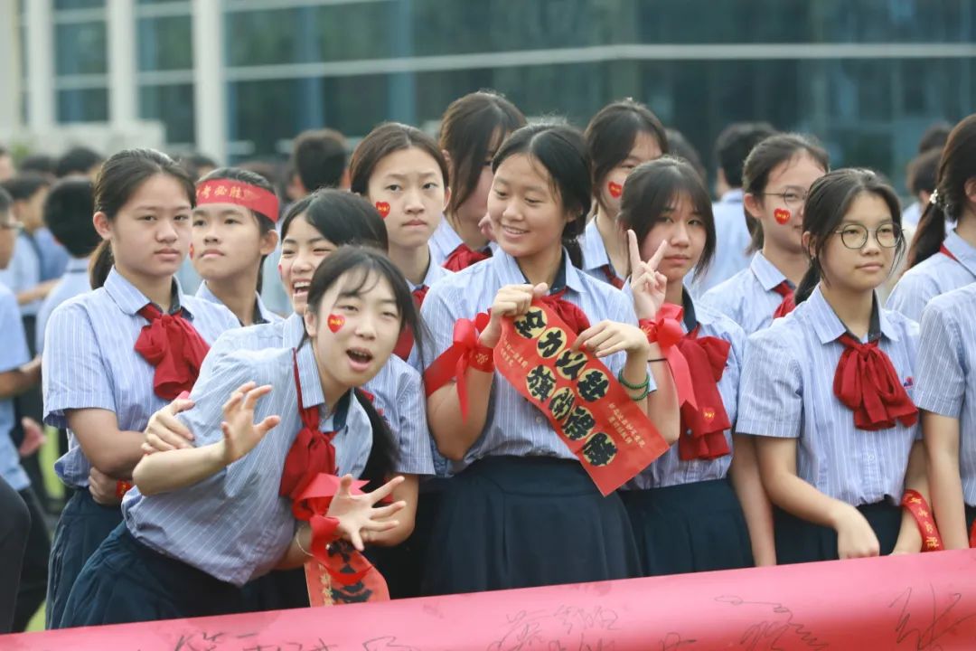 ? ? ? ?在活動(dòng)尾聲,九年級(jí)學(xué)子們迎來(lái)了一個(gè)充滿儀式感的環(huán)節(jié)——在橫幅上簽名。一條巨大的紅色橫幅鋪展開來(lái),上面印著“百日沖刺,決戰(zhàn)中考”的醒目字樣。每一位學(xué)生都鄭重地拿起筆,在橫幅上簽下自己的名字,表達(dá)對(duì)中考的堅(jiān)定信念和必勝?zèng)Q心。