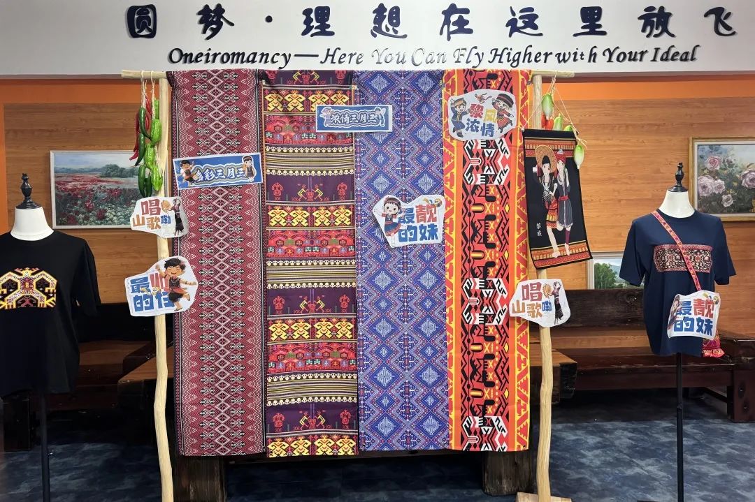 ? ? ? ?活動期間,民族文化展示區(qū)熱鬧非凡。黎錦、苗繡、藤編、椰殼雕刻、黎族服飾、銀飾等非遺實物有序陳列,學(xué)生解說員生動講解,讓大家領(lǐng)略到黎苗文化的深厚內(nèi)涵?,F(xiàn)場展出的主題扎染作品創(chuàng)意十足,傳統(tǒng)技藝與現(xiàn)代設(shè)計的碰撞呈現(xiàn)出獨樹一幟的黎苗風(fēng)情。