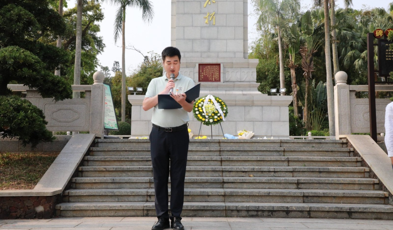 ??谏礁邔W校黨支部副書記 副校長李濤先生講話。他著重強調(diào):先烈們用熱血鑄就的奉獻精神、堅定信念,是新時代學生必須傳承的紅色基因。他激勵學生們,要銘記歷史,珍惜當下的和平與學習機會,將先烈們的精神化作前進動力,在學習中遇到困難時,不退縮、不放棄;在生活里,主動關心他人,積極參與社會公益,從小事做起,肩負起時代賦予的使命,努力成為對社會、對國家有用的人才。
