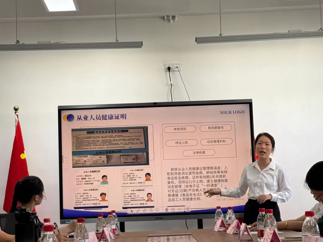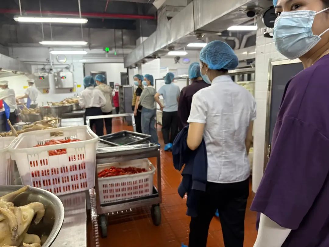 食堂負(fù)責(zé)人王小姍主任詳細(xì)介紹了食堂運(yùn)營(yíng)情況,每日食材抵達(dá)前,必經(jīng)歷“雙重核驗(yàn)”:農(nóng)殘檢測(cè)覆蓋全部蔬菜,檢疫證明與核酸報(bào)告同步查驗(yàn)肉類(lèi),不合格原料堅(jiān)決拒之門(mén)外;在人員管理上,我們構(gòu)建“培訓(xùn)+考核”雙機(jī)制:每月定期開(kāi)展食品安全規(guī)范培訓(xùn),覆蓋法律法規(guī)、操作流程、應(yīng)急處理等內(nèi)容,新員工實(shí)行“老帶新”結(jié)對(duì)指導(dǎo),全員須通過(guò)理論與實(shí)操考核方可上崗,讓規(guī)范操作成為融入日常的職業(yè)習(xí)慣。