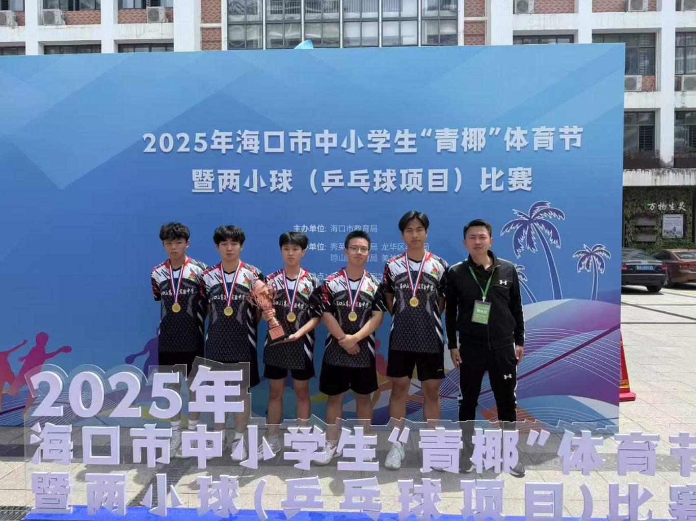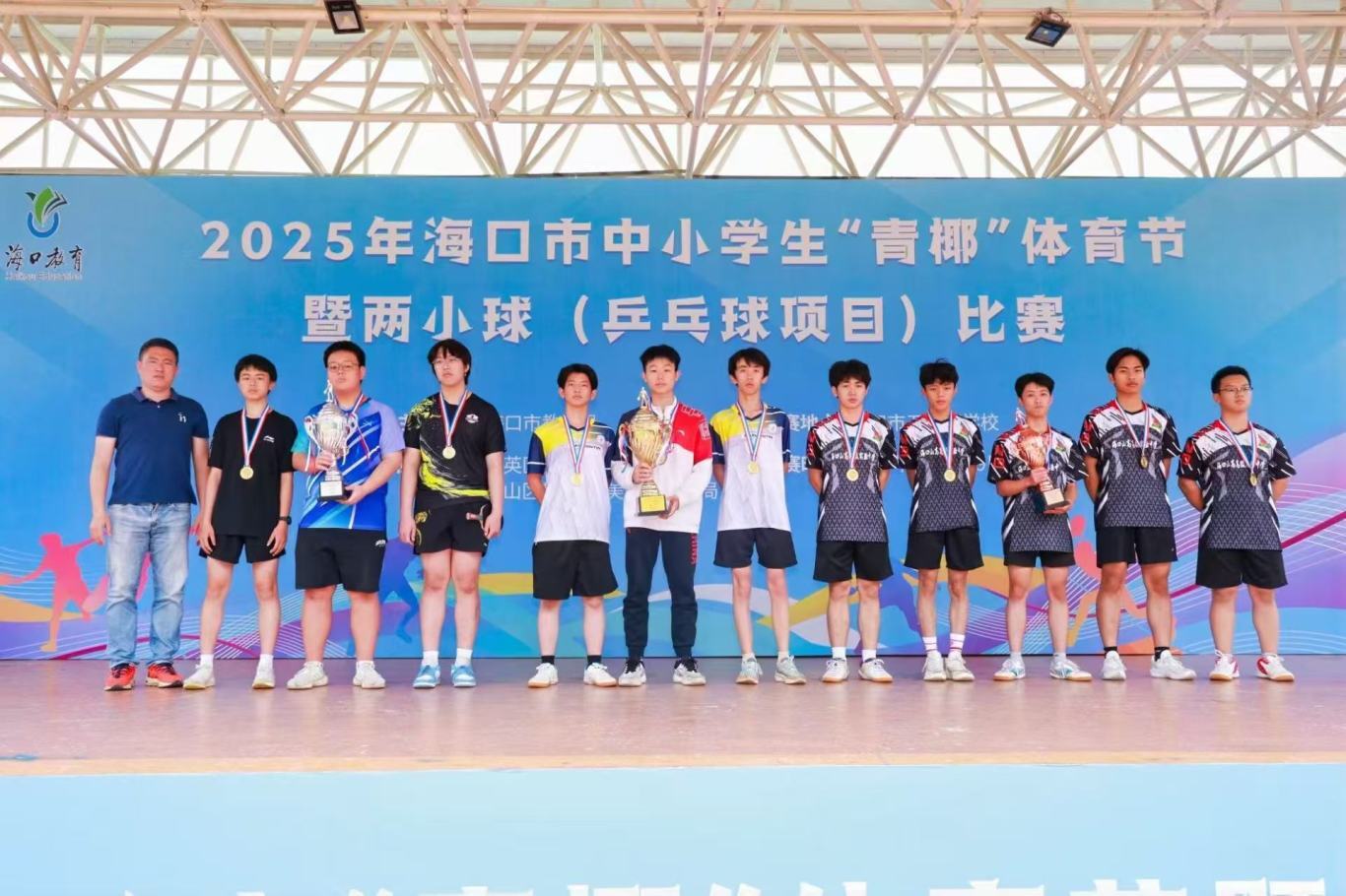 ? ? ? 熱烈祝賀海口山高高級實驗中學男子乒乓球隊在2025年??谑兄行W生“青椰”體育節(jié)暨兩小球(乒乓球項目)比賽中,一路過關斬將,斬獲團體季軍;在男子單打項目中,我校王子明同學和江正則同學分別榮獲第二名和第六名的優(yōu)異成績。